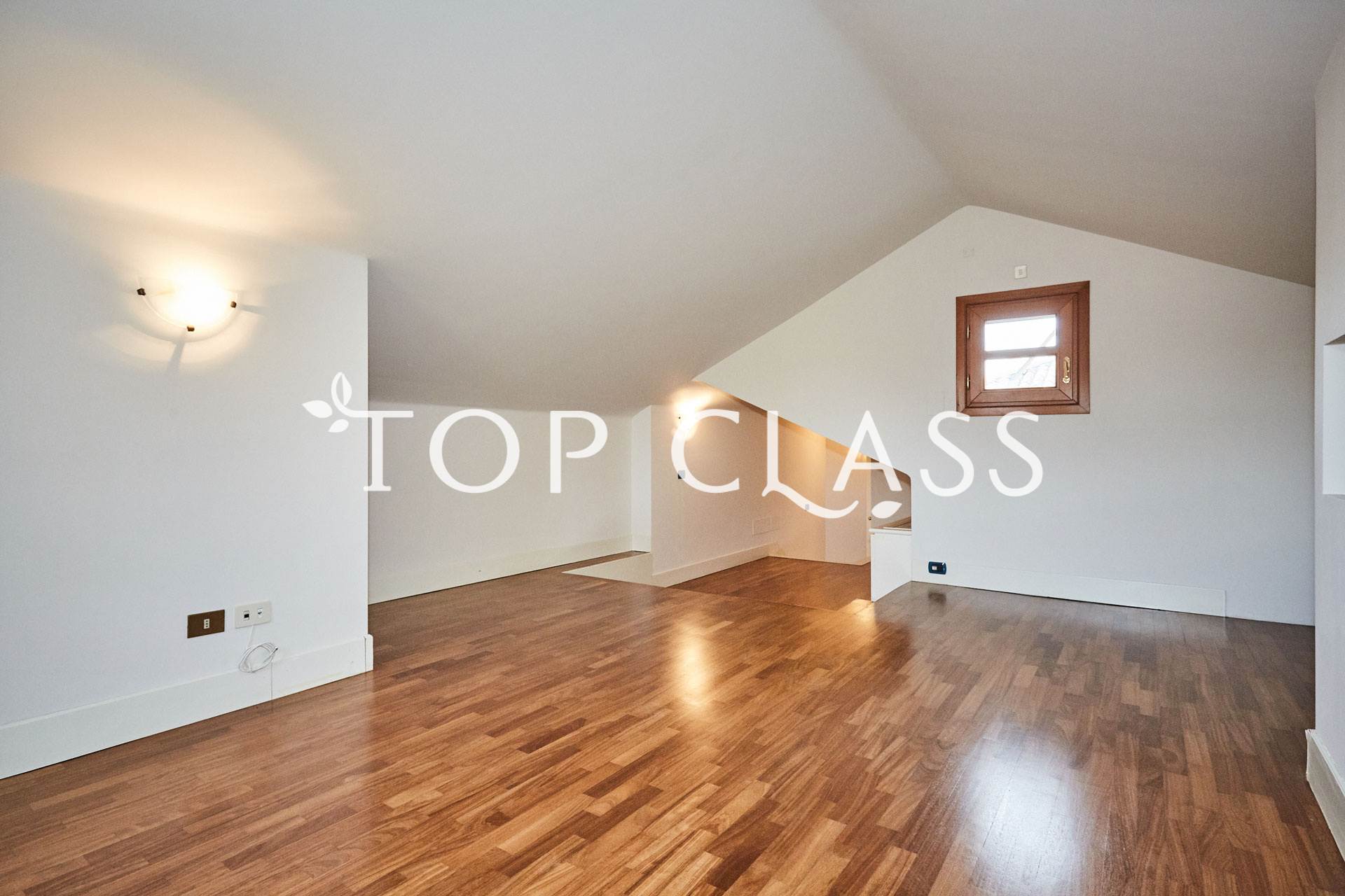 Imagine waking up every morning to the unspoiled view of the countryside. A dream that becomes reality in this villa for rent in Basiglio. Framed by the charming Borgo Vicino and equipped with a large corner garden, it offers a private and spacious environment for the whole family. The entrance opens onto the elegant double living room with a fireplace with interesting development possibilities. Also on the ground floor, there is a spacious kitchen, ideal for sharing moments together. The upper floor instead hosts the sleeping area, consisting of a master bedroom with a splendid view of the fields and a private bathroom, and two bedrooms plus a second bathroom with a bathtub. Additional space is offered by the attic with panoramic windows. While the basement offers large multipurpose spaces and a double motorized garage. It is impossible not to be surprised by the prestigious finishes: from the parquet floors to the classic decorations.