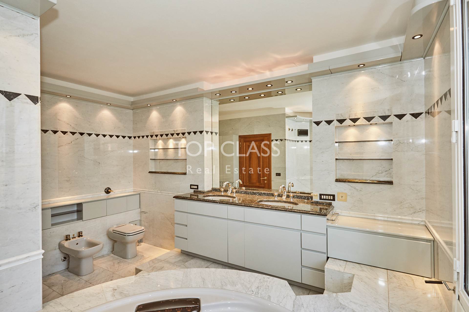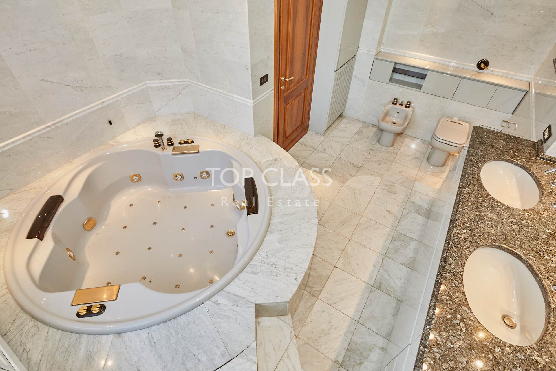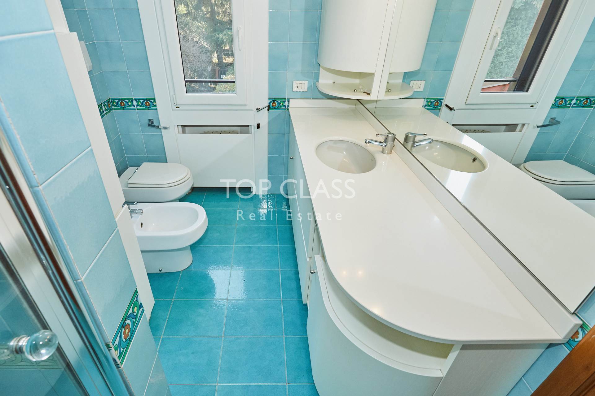 Located in a quiet area surrounded by the gorgeous park of Milano 3, this villa for sell stands out for its refined finishes. With direct access via private driveway and double garage, the basement houses a cozy tavern with patio. On the main floor we find the fully equipped, large kitchen with panoramic windows overlooking the countryside, a bathroom and the living room with loggia and access to the private garden. On the first floor, the sleeping area consists of three bedrooms and two bathrooms, while going up to the attic we access an additional open space.